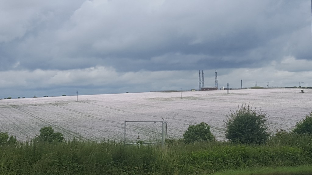 The poppies are a new crop, Google helpfully advises, bound for both pharmaceutical (the pods contain raw opium) and food use (seeds for cakes etc). It’s a great deal for farmers, all they need do is provide the land, plant and grow. The pharmaceutical companies take care of harvest and transport. Production of opiates is completed in Scotland. Judging by the size of the fields, the UK must be stoned out of their minds.