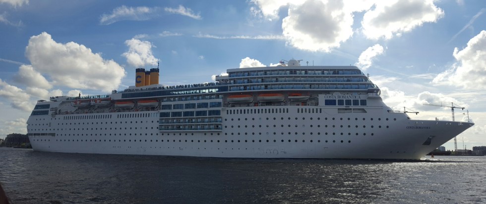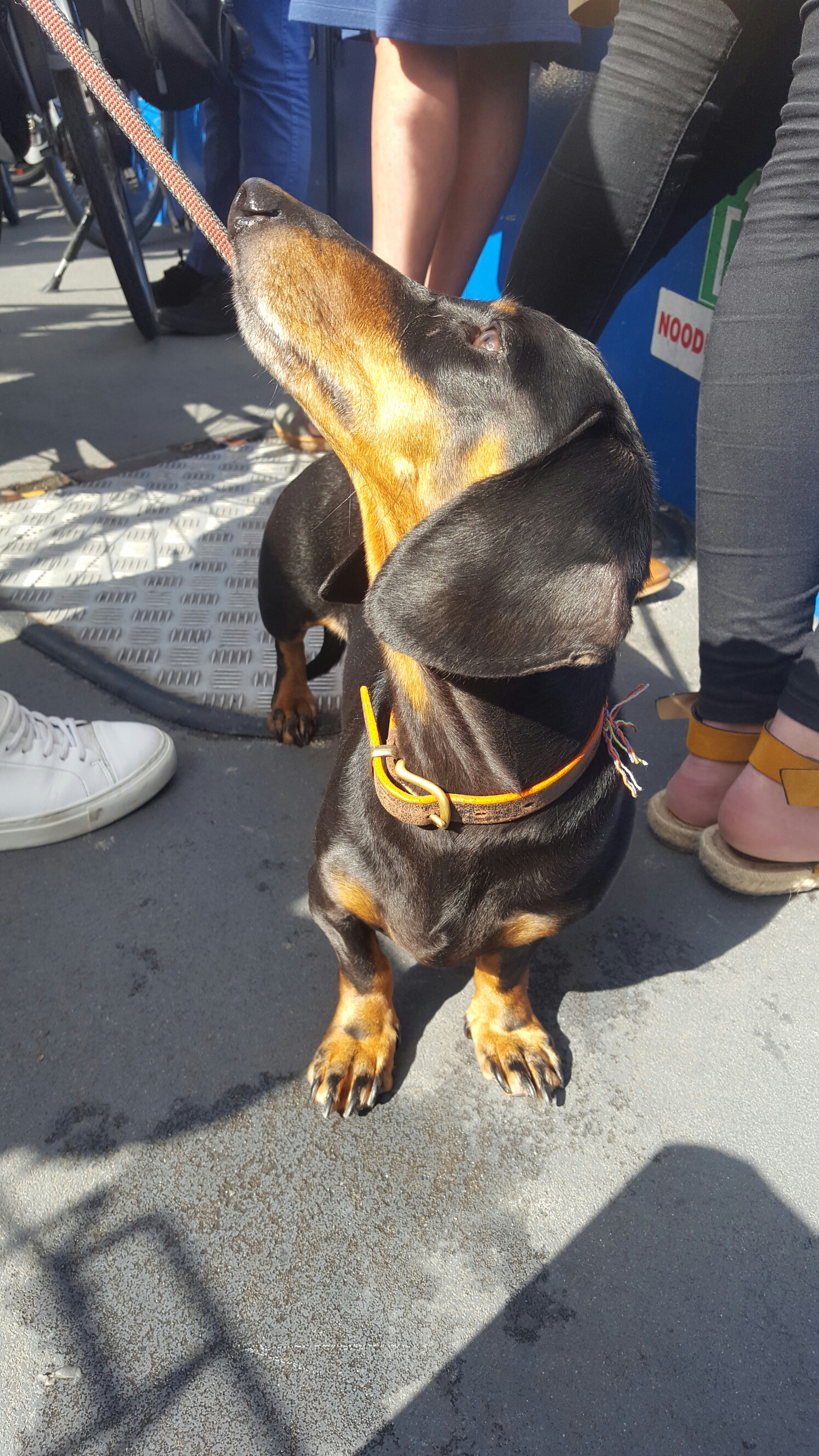 Our ferry pulls out alongside a massive cruise ship, the Costa Romantica, offering an excellent photo opportunity. We also make friends with Bella, a very sweet sausage dog.