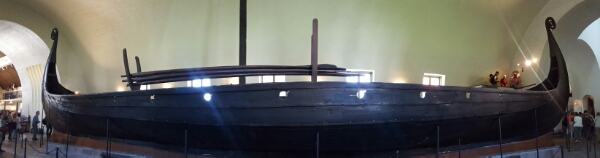 Our first reaction is astonishment at their extraordinary size – they’re huge, over 24 metres in length and 5 metres wide. The workmanship is beautiful – hand hewn planks, hand made iron bolts, delicate carving on the bow and stern. So much bigger than I thought they would be. You can walk around the ships and then go up into a viewing platform to look down into the interior.