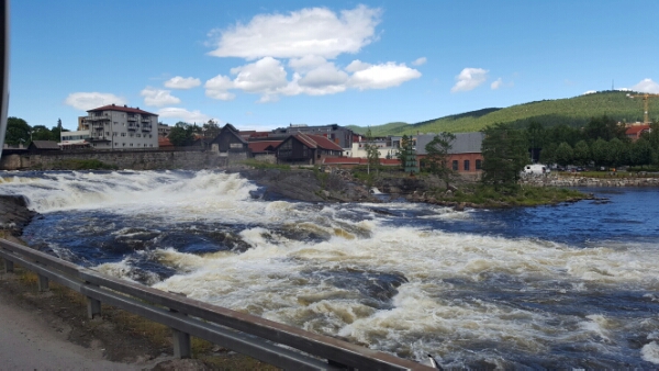 Streams, waterfalls and lakes appear regularly in picturesque form. Once we are past Oslo city limits, green fields replace suburbs, summer meadows in various stages of harvest and picture perfect farm houses and barns.