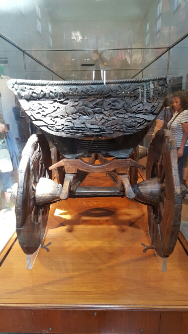 Also displayed are other finds from the three burial sites including incredibly detailed wood carvings of animal heads, highly ornate wagons (one is carved with squirrels!) and sleighs. One of the burial chambers was that of a Queen and clearly no effort or expense was spared in doing her honour.