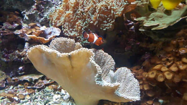 Our next stop is a scenic walk to the pier to tour the Akvariet, the aquarium. It’s home to sea lions, a wonderfully round, spotty harbour seal, Gentoo penguins, one with a fluffy chick, and hundreds of fish held in 9 large and 40 small tanks. It makes a welcome respite from the drizzle and is both informative and interesting. Especially fabulous is my round seal friend who sabotages my attempts to photograph her underwater by swapping windows to whichever one I am not at, and a male penguin, carefully rebuilding his nest, one stone at a time under the watchful eye of his partner. Judging by the look in her eye, I don’t think she was best pleased with the workmanship, but he was trying very hard!