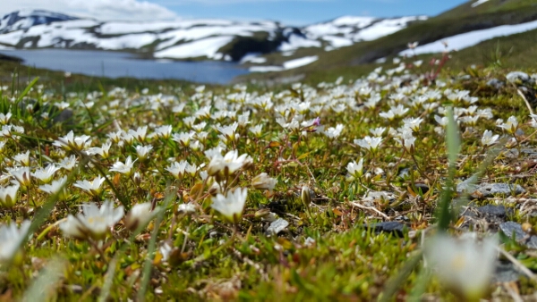 With midnight sun comes an early morn. The sun is shining brightly – it’s a perfect morning and setting for a hike.