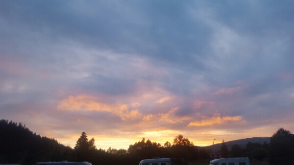 Thus sobered, we slow a little and don’t make it quite as far as planned. We do cross through to Nord Norge, northern Norway, to settle by a fjord. The rain has stopped and it’s a beautiful, warm, still night.