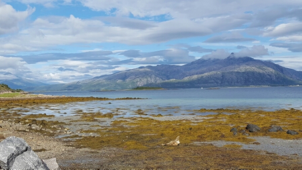 This part of the island is more in step with the rest of Norway’s countryside – either forest or farmland. We do see some fishing activity but they seem to be contained to fish farms, kept in enormous hooped nets in the fjords, some covered, others not. I’m presuming the covered ones are in areas with seals – looking perhaps for jobs as official tasters, resumes in hand.