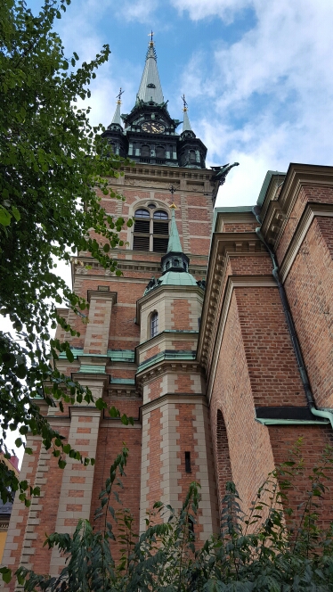 Last stop on our tour is the Riddarholmskyrkan, the burial place of the monarch and their families since 1290, nobles seem to have joined in since the 1600s. The church is laid out with a series of crypts, floor and wall headstones, and interestingly, walls of black commemorative wooden plaques, painted with family crests and detailing the date of birth and death of the honoured. Very hard to look at, are the royal childrens’ coffins, tiny in their eternal repose. The church is a 13th century masterpiece, built by Franciscan monks in the 13th century.