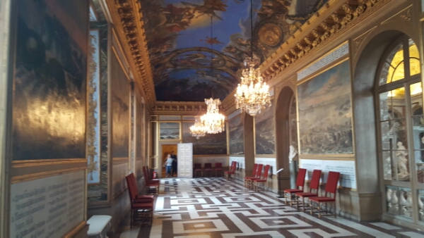 Also fascinating is the Karl X Gustav Gallery lined with huge paintings depicting famous battles through his rule. They’re painted in great detail showing the battlefields and naming the various landmarks. Below each is a detailed explanation in calligraphy script. Another formal room holds portraits of each of the European rulers of the time. We’ve seen a lot of palaces in our travels – these gallery rooms are quite unique.