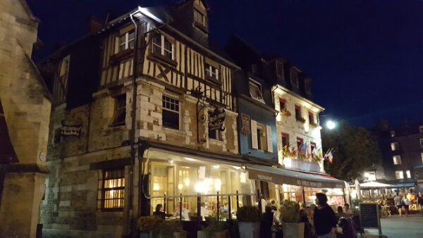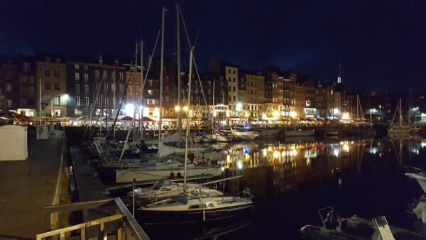 After dinner, Chris keeps his promise and we walk into Honfleur to see the night lights. It’s very quiet being a Monday, but the harbour is lit up, as are the key buildings. Very excited to be out in the dark, despite much ribbing from Chris that he’s only there as bodyguard. My camera is a little challenged in the dark, but I do my best before I eventually get dragged away home. But in fairness, it’s after my 100th treaty for “just one more shot”.