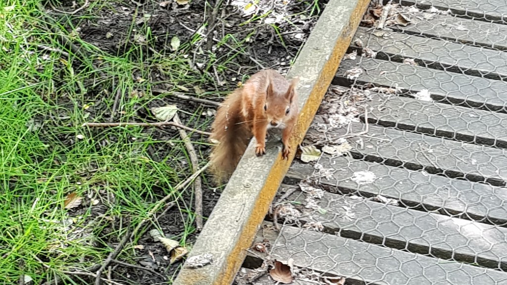 It’s off to the boardwalk, and it’s here where things really start to get good. This is where our baby went to hide. He spots us, quite alone on the path, and clearly has linked us with treats – he bounds over, still cautious, but quite willing to engage for nuts.