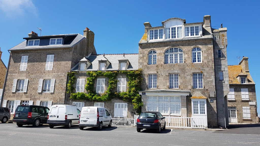 The village is a pretty, if austere, picture. Built of grey granite, its 11th century Romanesque church is now a life boat station with the main church Eglise Saint Nicholas built between the 17th and 19th centuries. The houses radiate in a circular fashion, emulating the shape of the bay which is busy with fishing boats and yachts. With the clear blue skies it’s a very pretty setting.