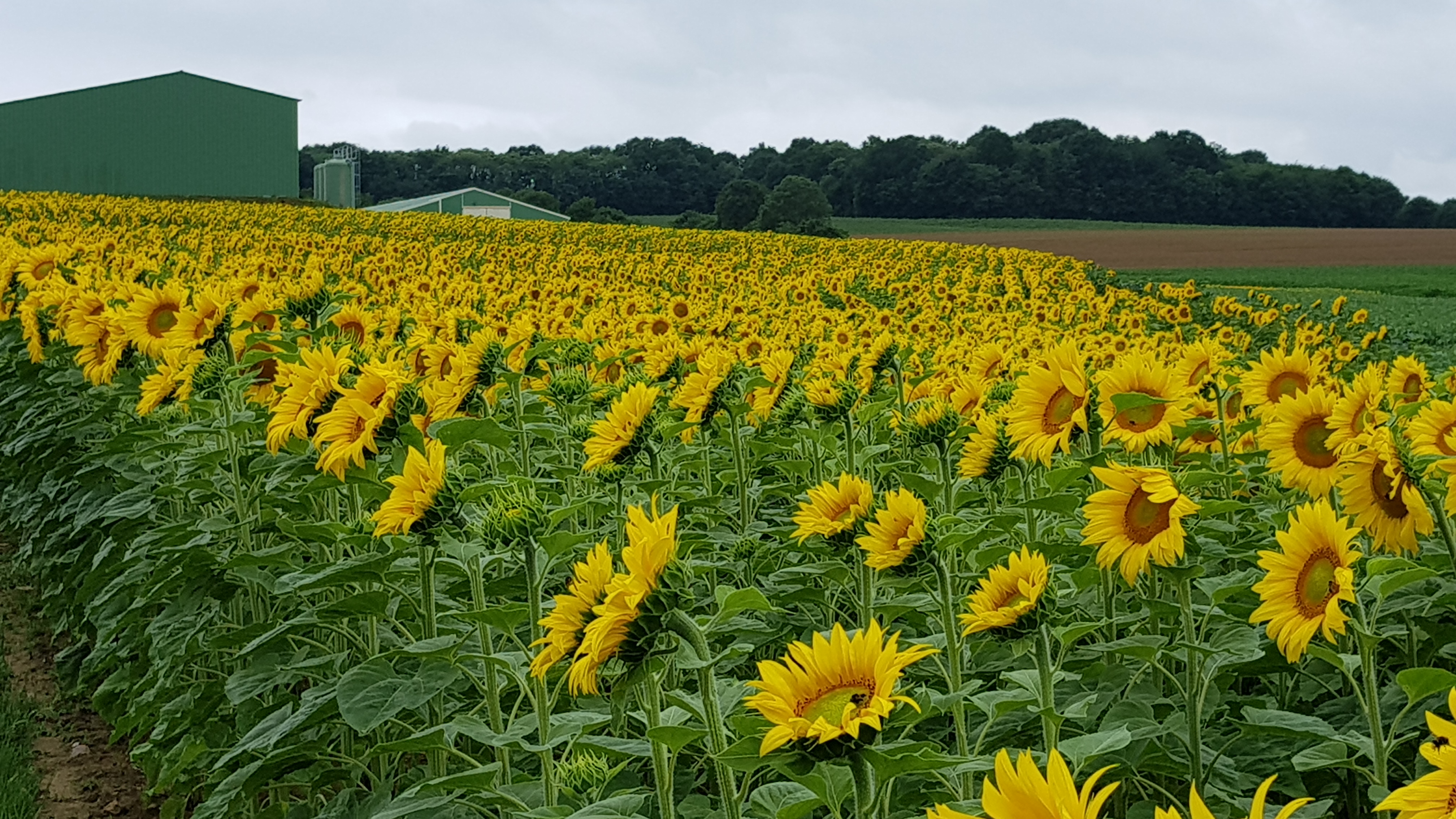 The rain accompanies us across farmland, either golden with stubble or the bright green, lush corn fields. An occasional sunflower crop appears, their heads turned hopefully to the sky. We see many buzzards surveying their domain. I can’t quite pin down how I feel about birds of prey. Beautiful, yes, but I feel very sorry for the little creatures they prey on.