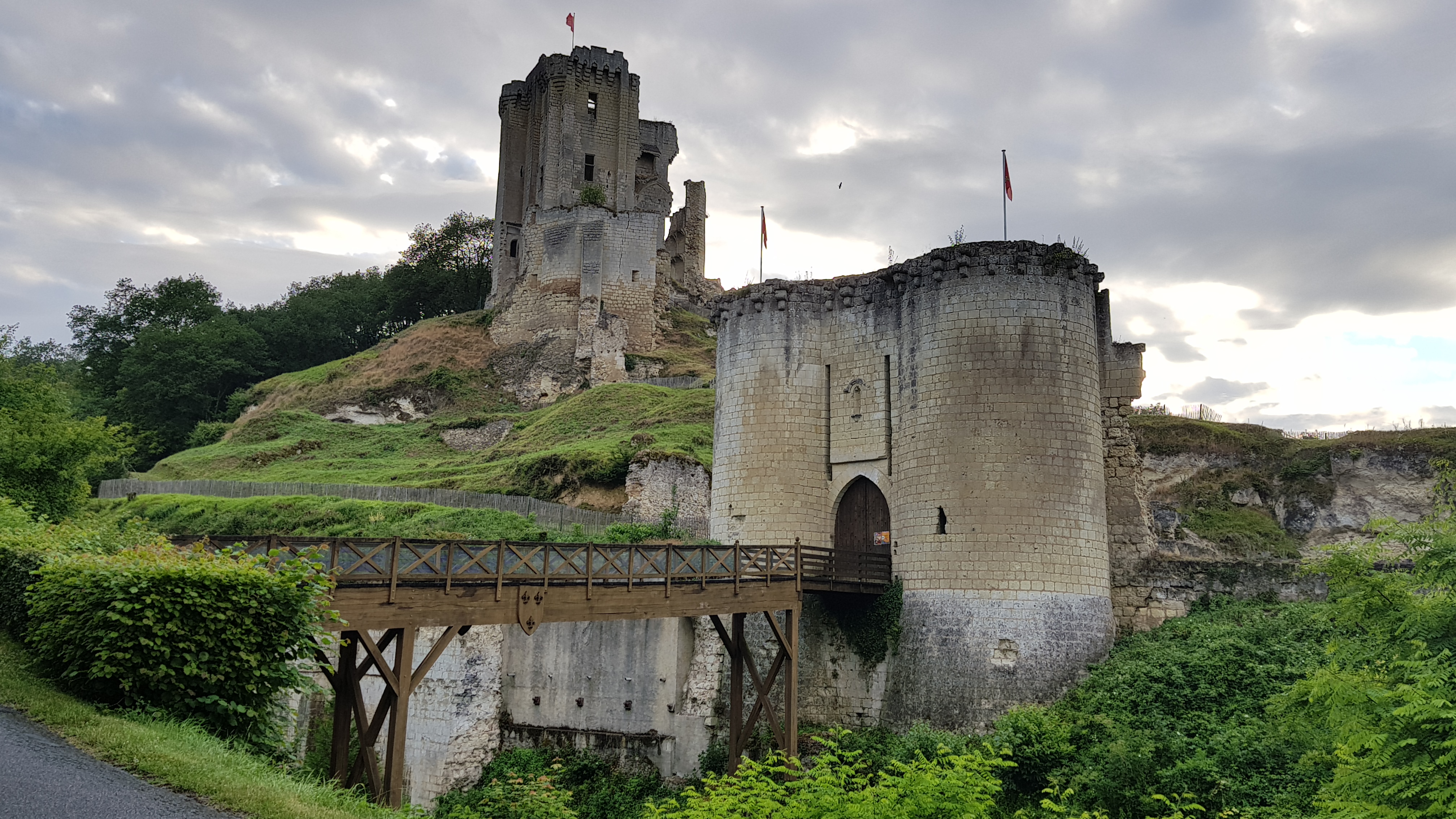 Larvardin is the result of centuries of changing architectural styles. Half timbered cottages sit along side limestone houses – all are overlooked by limestone caves that date back to troglodyte times. The village is overlooked by a castle ruin that sits on high. It’s very picturesque. Our book has delivered, yet again. We take refuge in the church, richly decorated with murals from the 12th and 16th centuries.