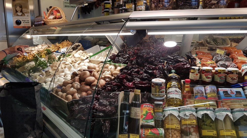 Our bus driver helpfully points us in the direction of the market, Mercado de la Ribera – he must have heard tummies rumbling. It’s a pretty building, built in an art deco style in 1930, and one of Europe’s largest undercover markets covering two levels of fruit and vegetables, meat, seafood and endless pintxios bars.