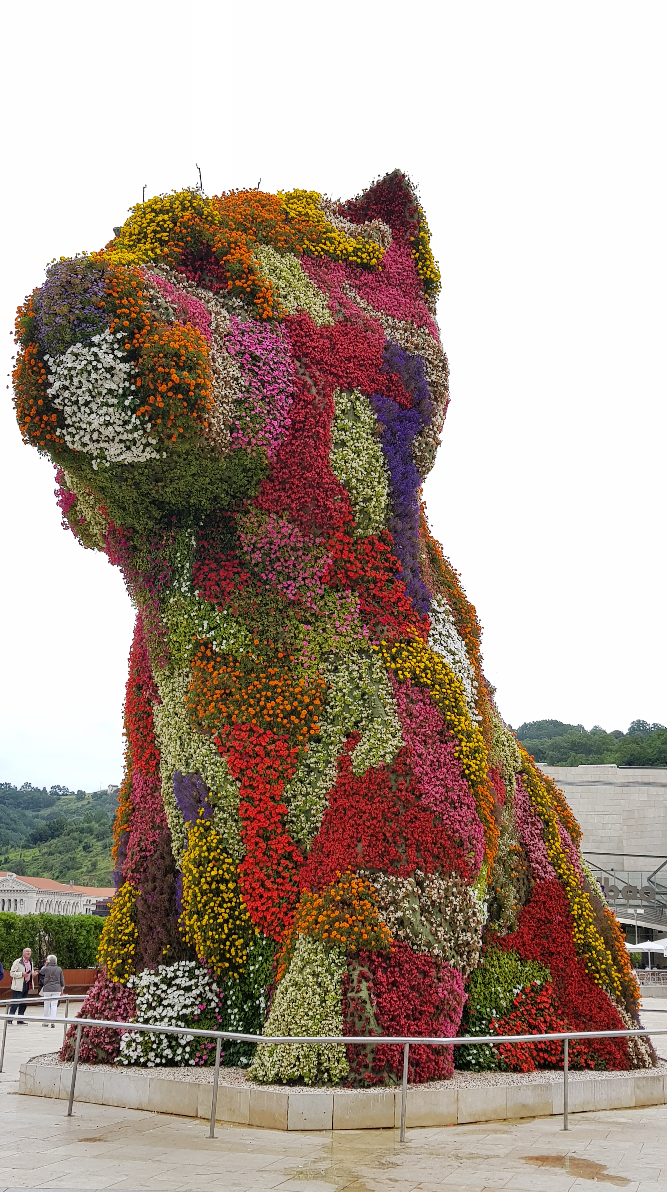 As stunning as the museum is, I can’t do it justice from our vantage point but before I cross the river for an orgy of photography, there’s one sight I’ve been dying to see: the living sculpture entitled “Puppy” (or as I call him, Dogsy) commisioned for the museum’s opening in 1997. He’s gorgeous, a riot of summer flowers and he is indeed a very good boy, having faithfully conquered “sit” for decades.