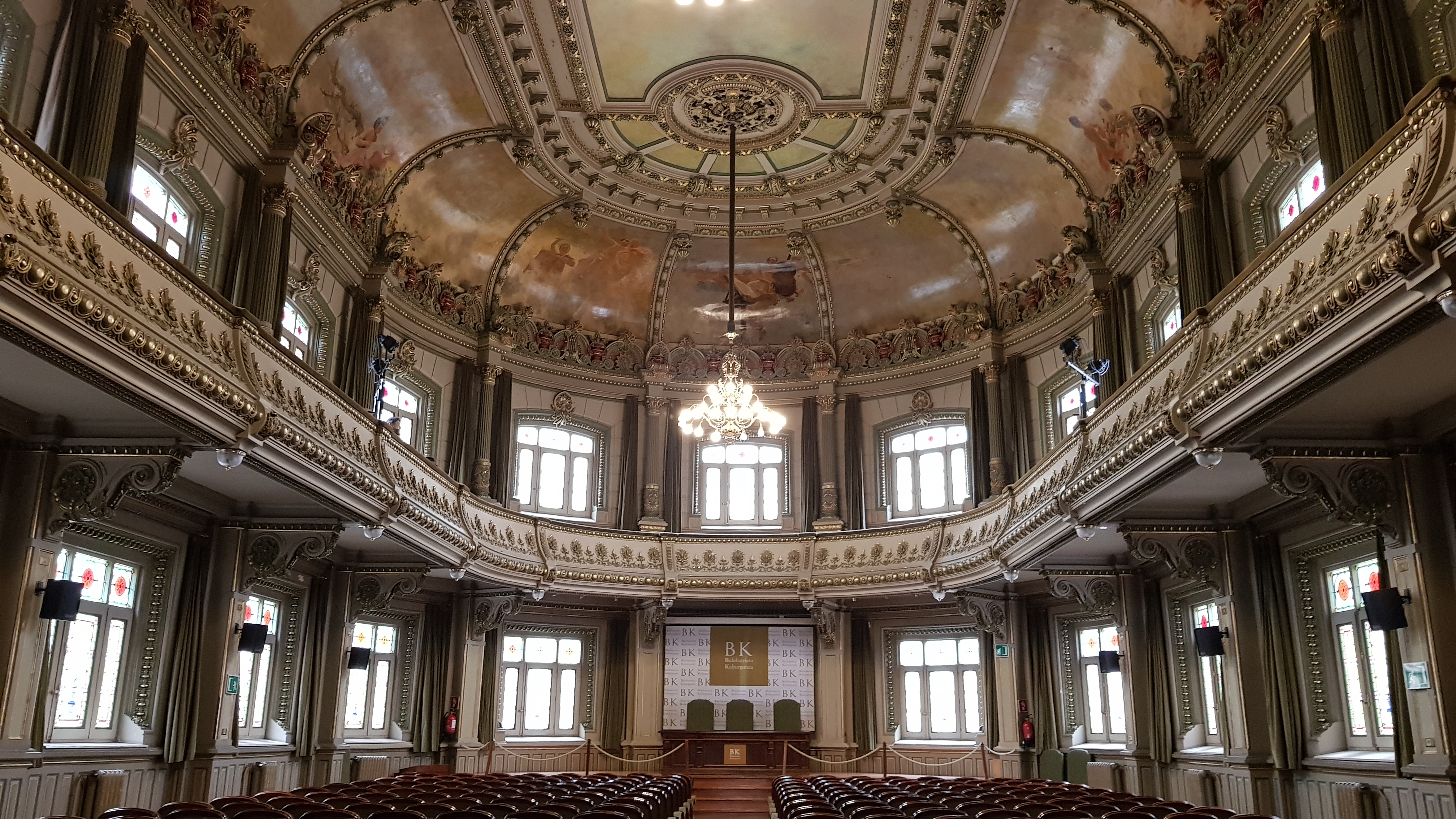 As I’m in snap happy heaven, we have a visitor, a nun from the nearby convent, who manages to convey that if we think this is good, the Bibliotheca is better. It proves to be an excellent tip. Our guidebook doesn’t mention it, but it is indeed a jewel. Google finds it, the local library back in the old city, and it’s 19th century opulent loveliness with stained glass, moulded ceilings and beautiful light fittings.