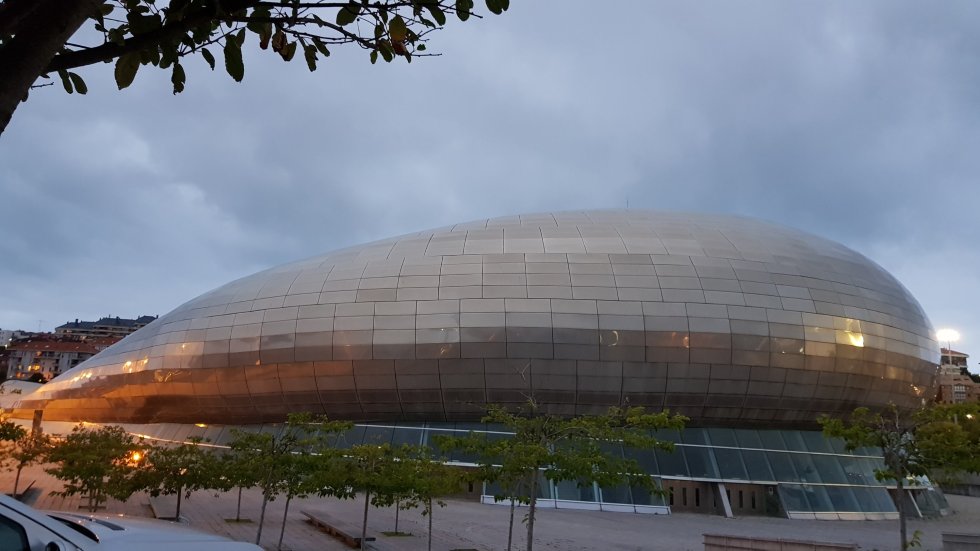 We’re in Santander quickly thanks to the freeway and score a great spot, the last one, by a central park close to the shore an a space age stadium.