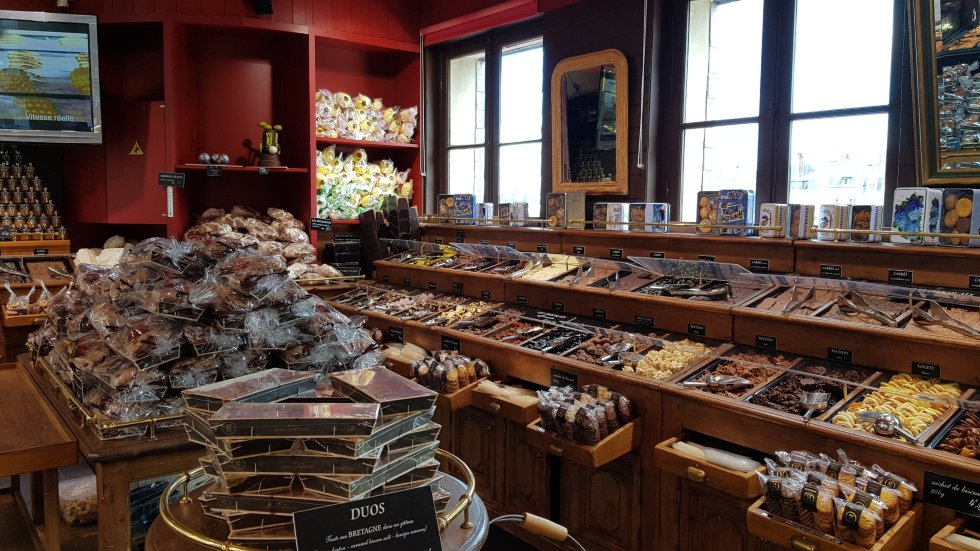 After lunch is devoted to shopping, tough task that it is.  A few local treats make their way home: salted caramels, biscuits and a weighty slab of soft nougat.