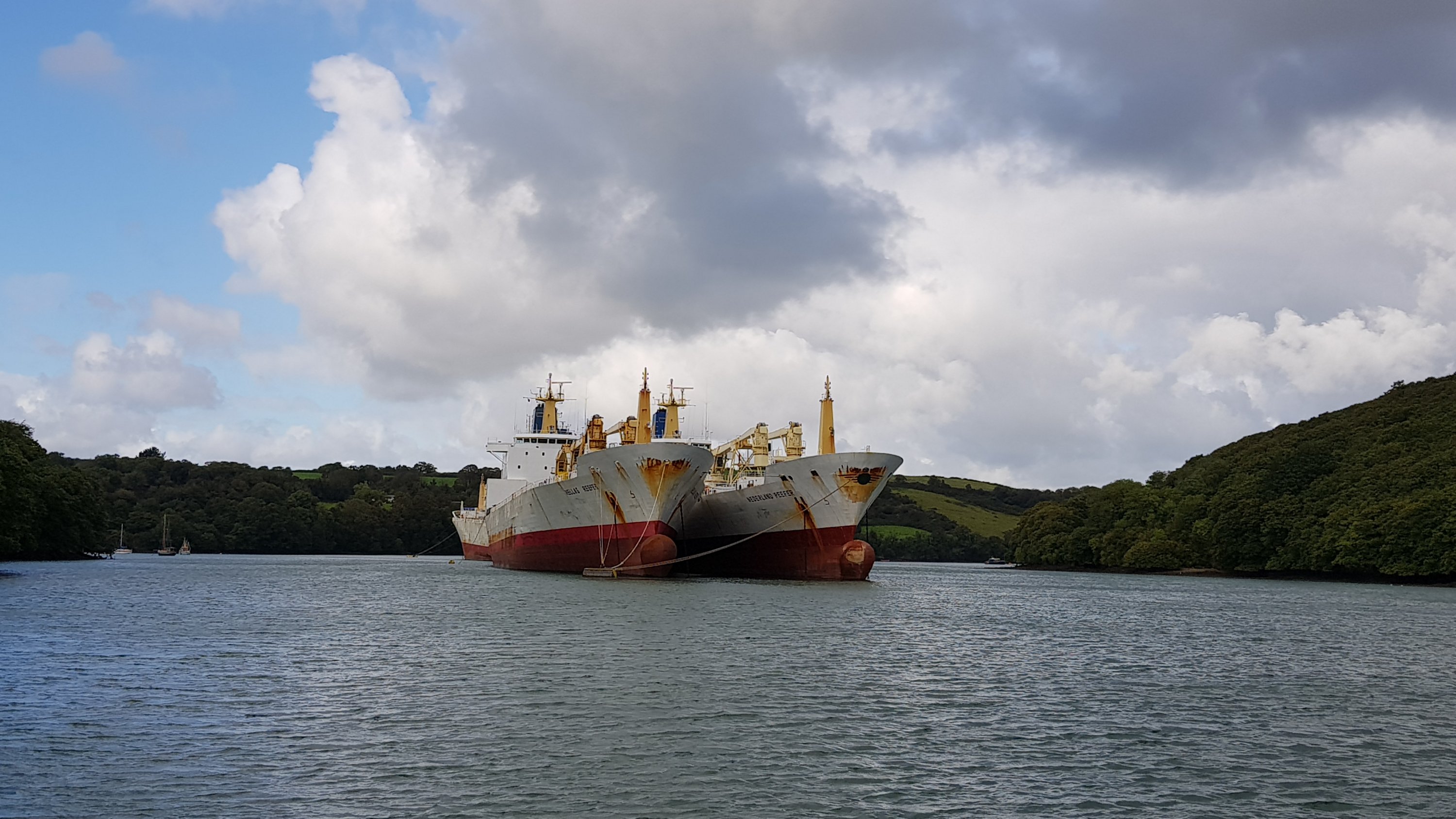 We make it here on most trips, and each time it’s a little different. Not the least of which are the two massive ships anchored near the ferry crossing – not sure what that’s all about.