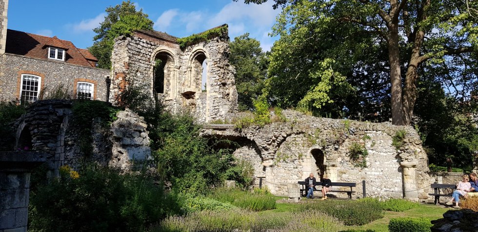 We visit the nave, the Trinity Chapel, the cloister, the Chapter House, the site of the Martyrdom, the enormous crypt and the ruins of the monastic dormitories, now home to a medieval medicinal herb garden with explanations for the herbs’ uses.