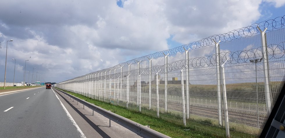 Back to our landing. Calais has stepped up security since we came through last. Following its immigration issues, several miles of razor wire have been installed, dissuading those trying to board crossing vehicles illegally.