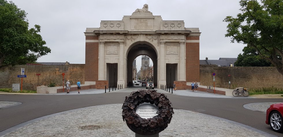The entrance to Ypres is marked by the enormous Menin Gate, a memorial dedicated to all the Commonwealth service men who lost their lives but could not be found for burial.