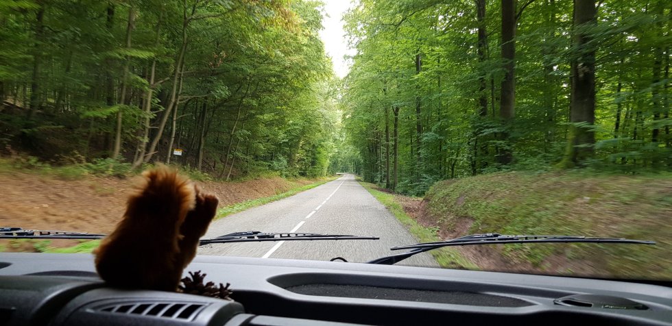These forests are allegedly full of creatures. There are inumerable signs for deer and lots of wild boar decorations in the villages we pass, but our only sighting is a tiny wee dot of a fawn, hiding in plain view at the edge of a forest. Much happiness at spotting her, despite Chris refusing to stop so that I could adopt her and offer her a bottle of milk. Selfish.