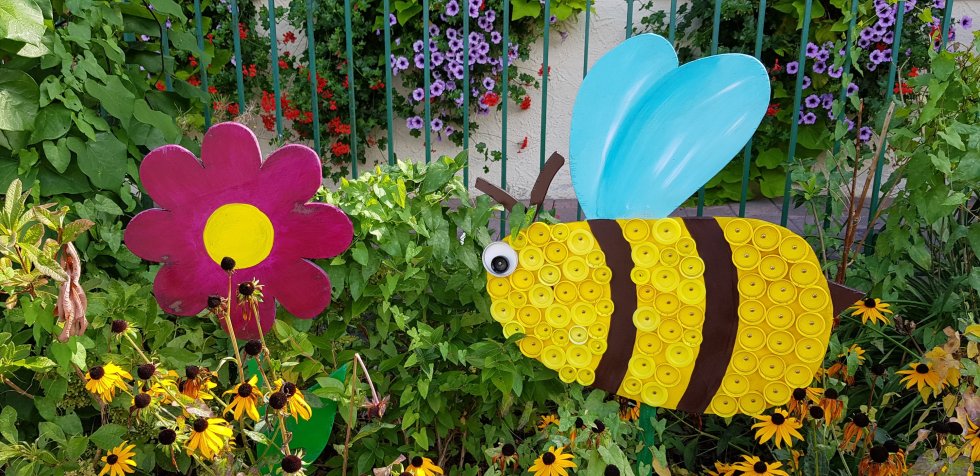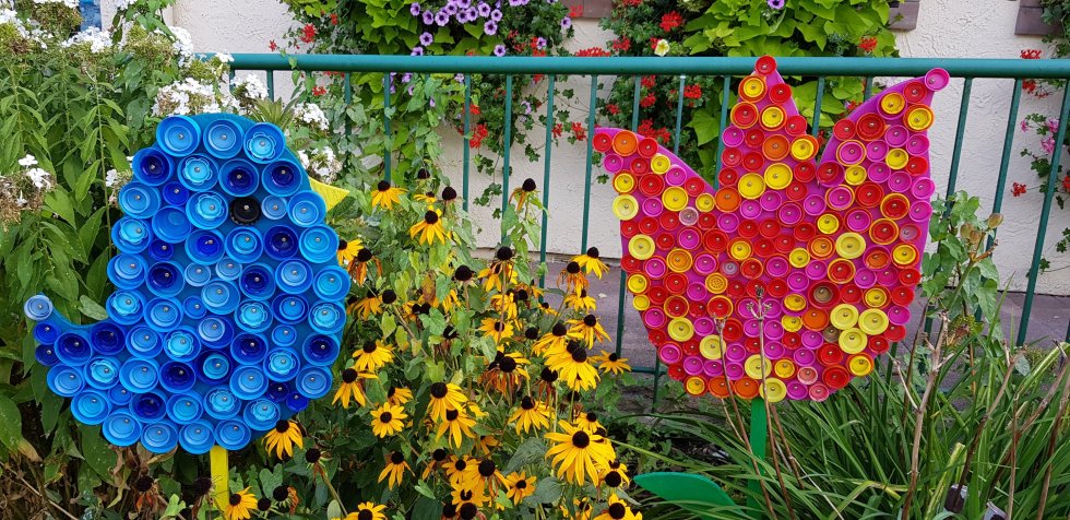 The town is prettily decorated with recycled art works and proudly notes that it’s completely pesticide free.