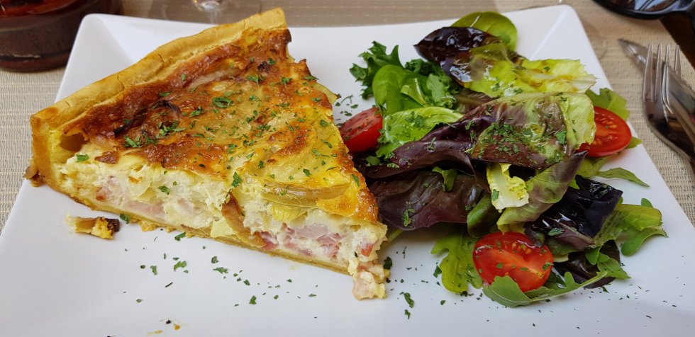 He’s not happy. Meanwhile my classic Alsacian tarte of white onion and lardon is superb, with pastry light as a feather.