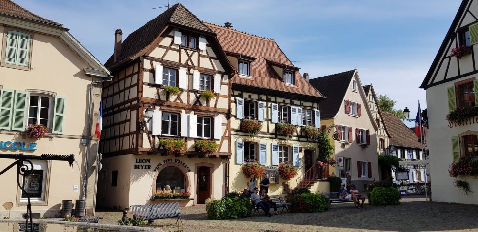 We’ve saved one of the prettiest Les Plus Beaux Villages for last. Eguisheim is set in the heart of the Alsace wine region, an area of some 170 kilometres set at the foothills of the Vosges forest, devoted to making amongst the best reislings, gewurztraminers, pinot gris, muscat and pinot noir France has to offer. So successful in their ventures, the vintners of this area have been granted protected AOC Alsase apllelation status.