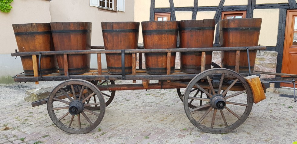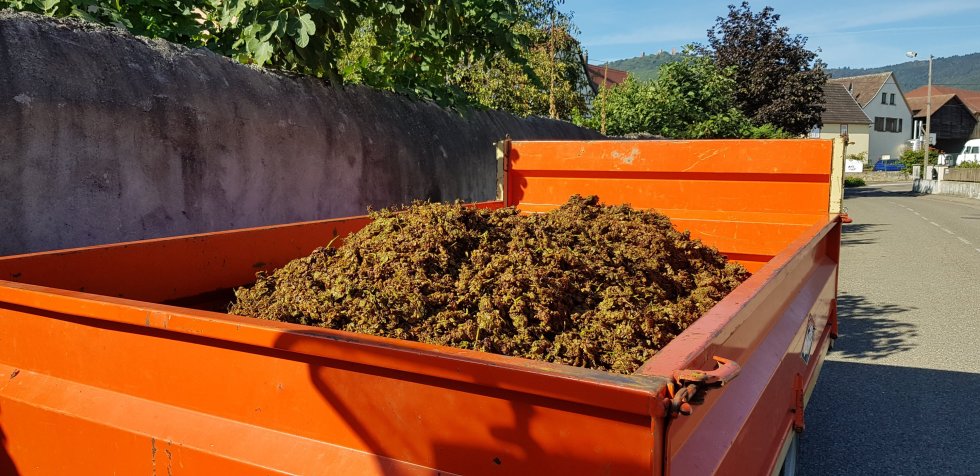 We’re staying on a vineyard, barely at village edge. Our vineyard had been in the same family for 11 generations, since 1625. Isn’t that extraordinary? Chris stocks up on their grand cru reisling, gewurztraminer and the pinot blanc. I take the opportunity to kick back and watch the vineyard team clean out the vehicle used the the days harvest.