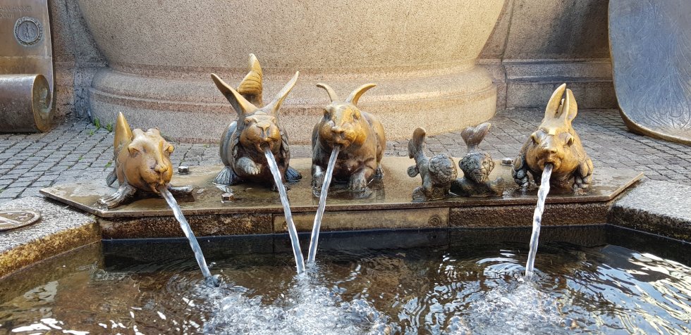 Bunnies feature prominently, and look at this little witch’s cat at the base of a brass fountain.