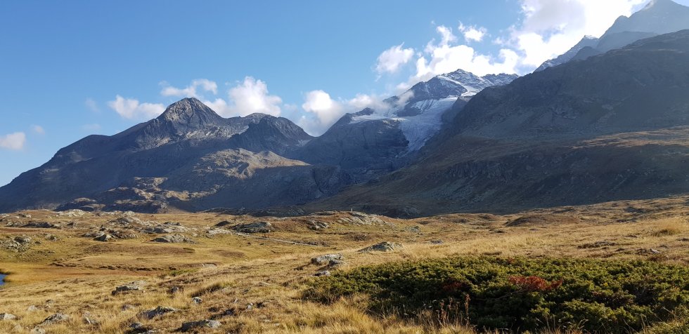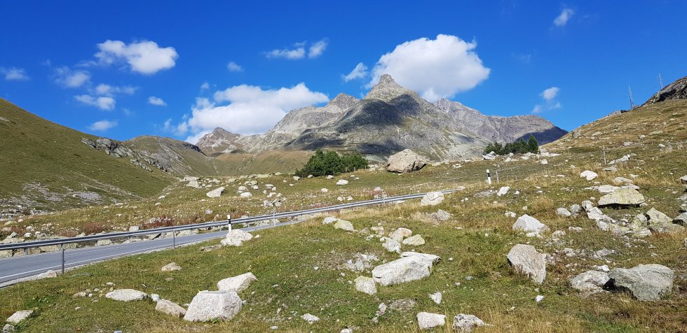 We’re traveling over the Julier Pass, a breathtakingly scenic route. Despite many a Swiss village dotting our way, our surroundings are much wilder then those of Austria.