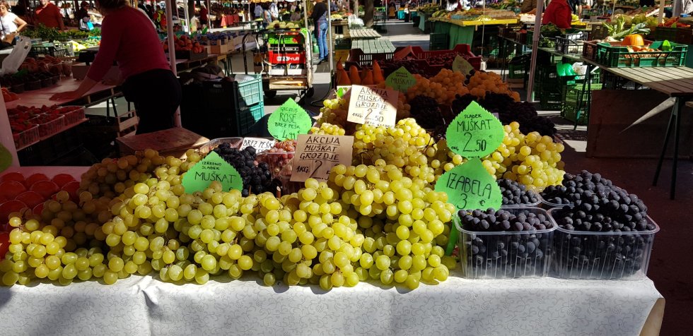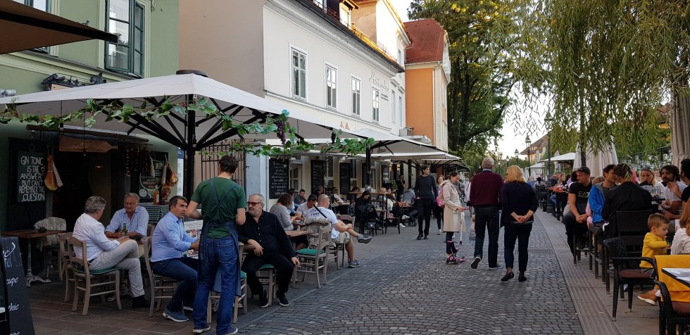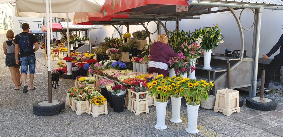 All that hiking deserves a drink and so we settle in the market district for drinks with a local flavour. Slovenian beer and wine for Chris, rose vodka for me.