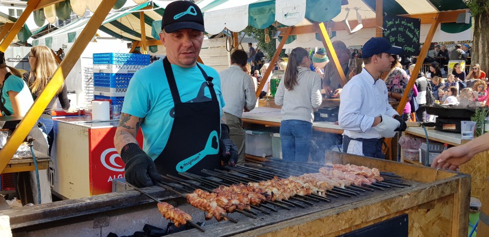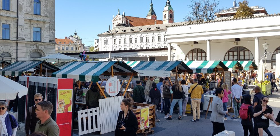 Unbeknownst to us, we’ve picked the perfect day to arrive. Each Friday, Ljubljana holds a food festival, an endless array of food tents offering local specialities and international cuisine.
