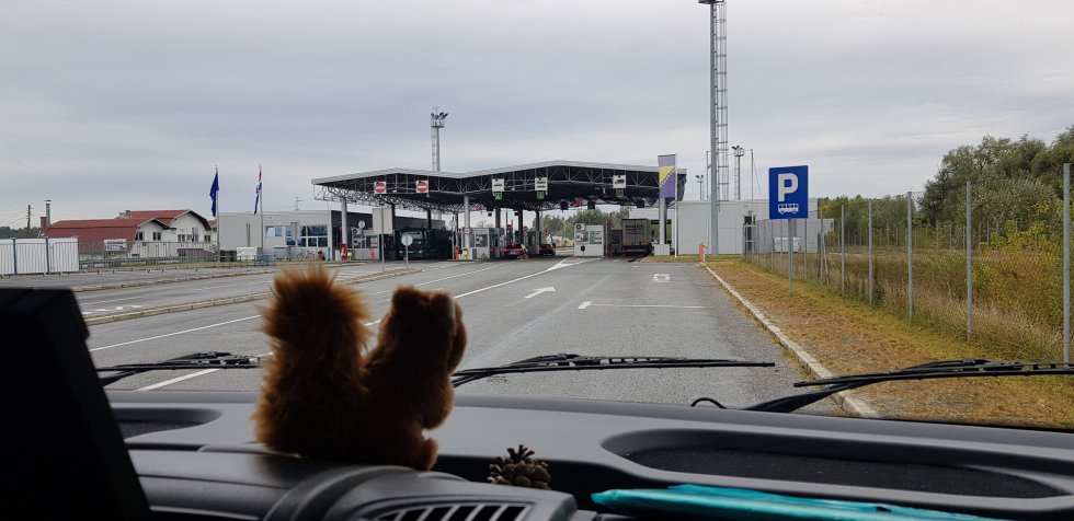 Chris has changed our plans overnight, crossing to Bosnia at Jasenovac only 40 km from where we start the day. Incredibly, the paperwork and green card purchase at the border only take minutes and we’re in. I was convinced they’d turn us away to a larger crossing. Or turn us away completely. Another couple who arrived before us were not as lucky, they’re still grumpily waiting as we drive away.