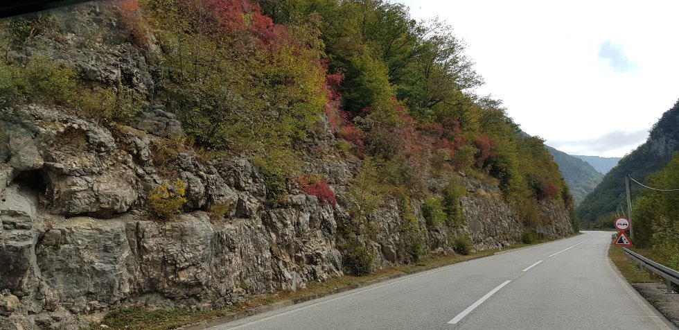 We drive through incredibly picturesque country, the river our constant companion. It takes us past farmland, berry growing areas, fish farms, forested hills, one gorge after the other and beautiful autumnal colours.