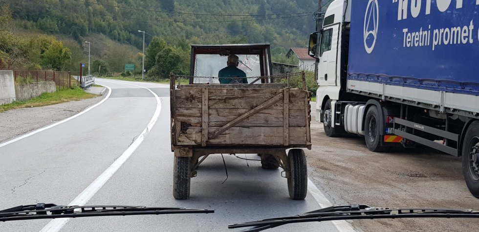 High in the mountains, as we’re in the final approach to Mostar, signs of tourism start to appear. Coach buses are frequent and a restaurant trade catering to busloads appears. Most frequent are the spit roasts, a little confronting as the photographs feature a full sheep on them, head and all. Once again we’re in no man’s land, post lunch, before dinner.