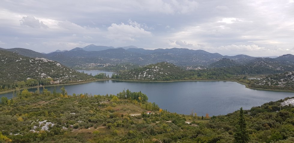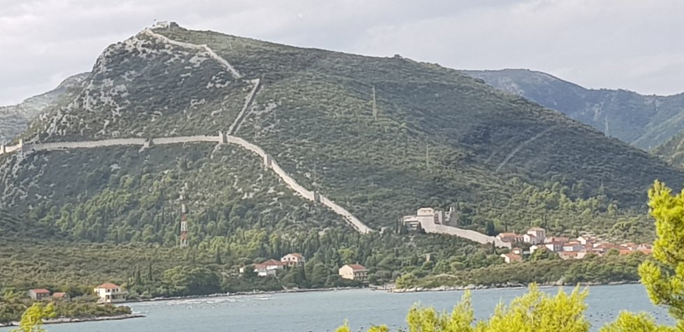 We see the enormous defensive walls of Ston, in the distance. At 7 km in length, taking over 200 years to build, they are the largest defensive walls in Europe.