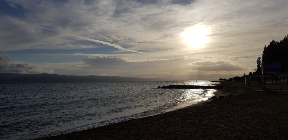 Laden with local treats, drunk on the beauty of the coastline, we meander further than we intended. I want to stop on the water, but quite a number of motorhome stops are now marked in various apps as “not here any more, site now under development”. It’s understandable – the demand for tourism/real estate space would be fierce here as land is at a premium, sandwiched as it is, between mountains and sea.