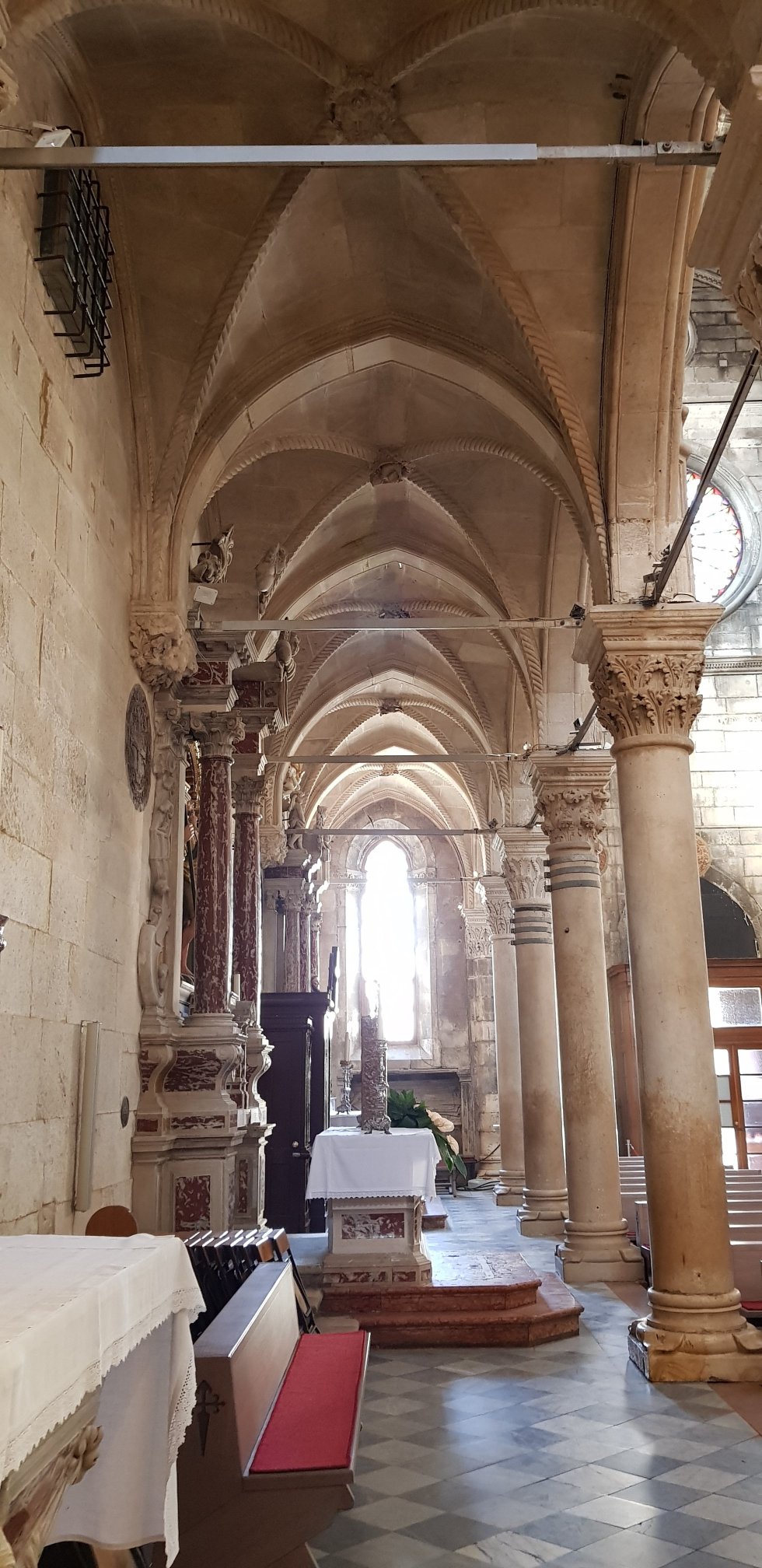 Built between 1432 and 1555 it’s the combined artistry of Dalmatians, Italians and Venetians. Sadly, it was shelled extensively in the war of the 1990s, taking many international experts several years to restore. Their careful work can be seen on the exterior where stones have been replaced or inlaid to repair damage.
