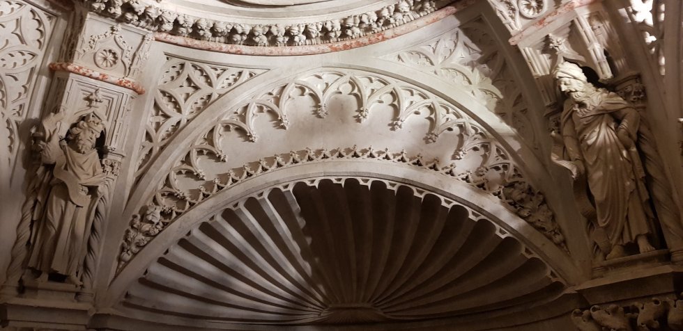 Inside, restoration works still continue, restoring the white stone to its original gleam. The Cathedral is filled with artistic treasures,