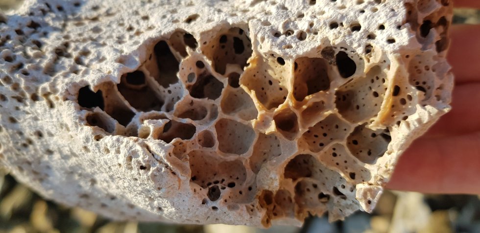 and an interesting insight into the porous light rocks that dot the shore – a broken one reveals its honeycomb interior. Fascinating!