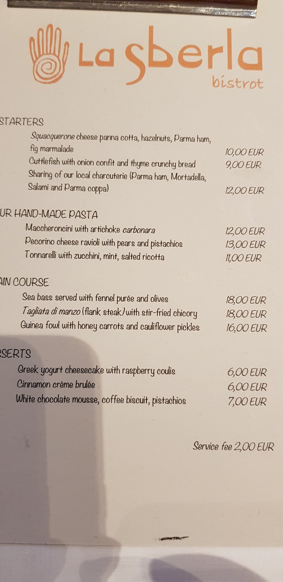 The menu is short, with specials: