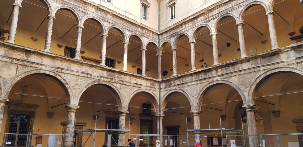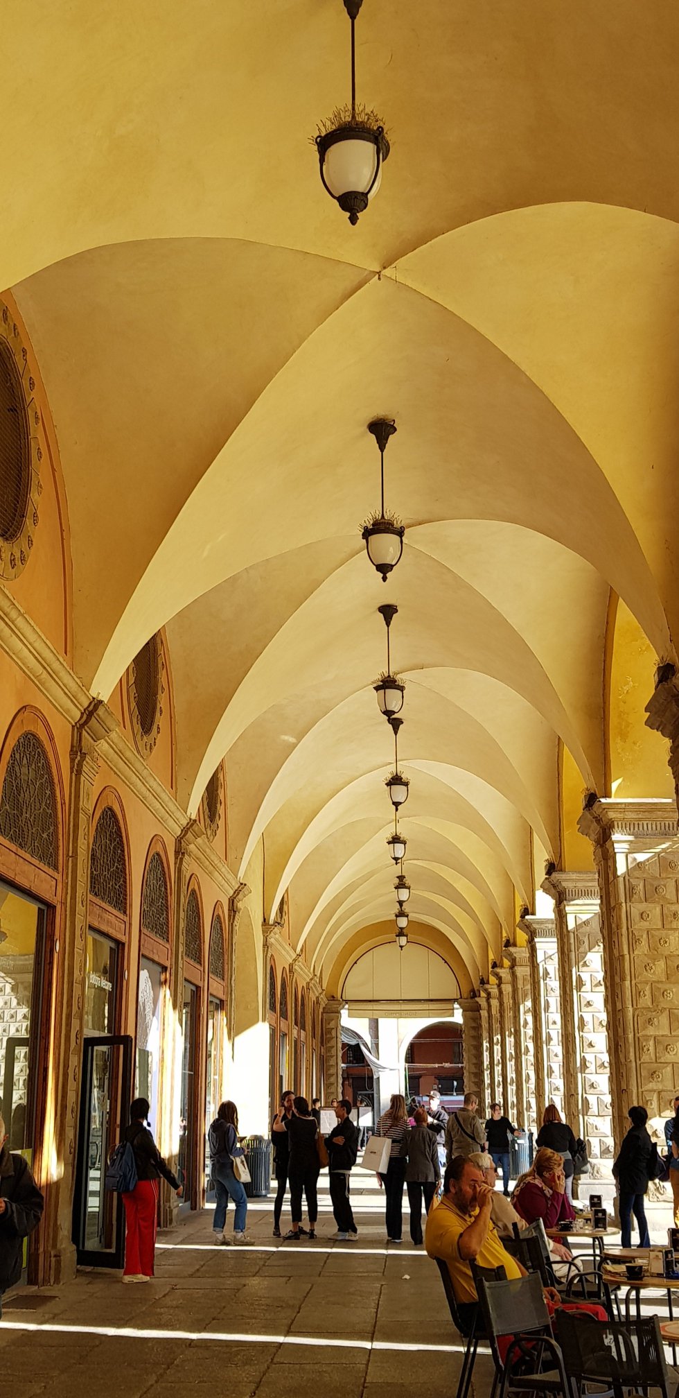 We pass through kilometres of porticos, designed to protect pedestrians from rain and sun,