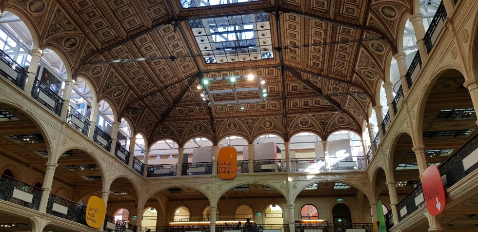 we visit the Salaborsa, now the city library. With its stunning art nouveau ceilings,