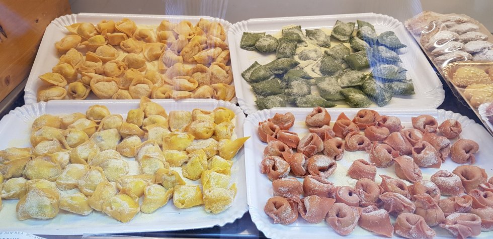 I opt for a local speciality, tortellini in brodo, tiny tortellini, stuffed with parmesan and mortadella, in a beef broth.