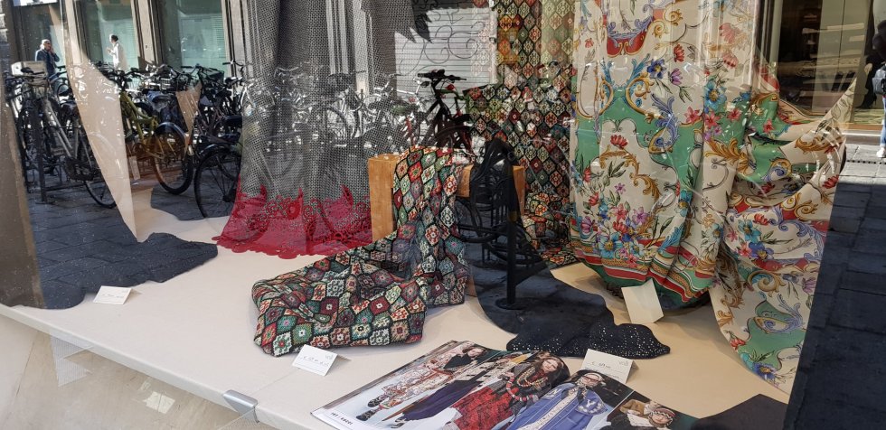 I forgot to mention that in Bologna there were a series of high end fabric stores, with the latest runway collection fabrics their window displays. It doesn’t get much more up to date than that. There were quite a number of tailors, too. Wouldn’t that be fun, walking in with concepts, fabulous fabrics to hand and planning a new wardrobe. But I digress…