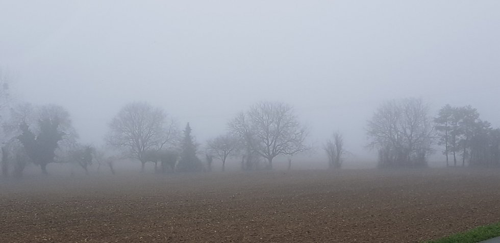 The morning sees us drive through open farmland, bare as far as the eye can see. Not that it can see far mind – fog still blankets the land, possibly even heavier than it was yesterday.