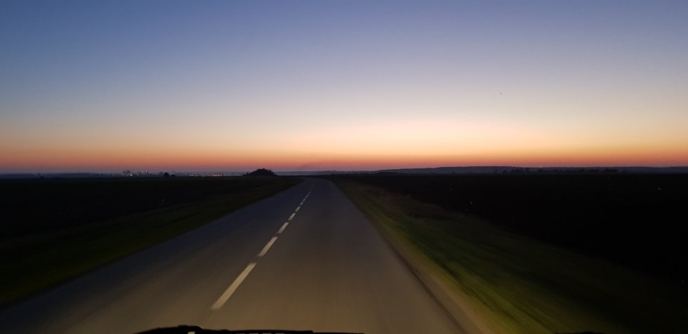 The fuel tax protests get in our way of course. We divert off the main road, doubling our travel time and then some. It’s completely dark by the time we stop.