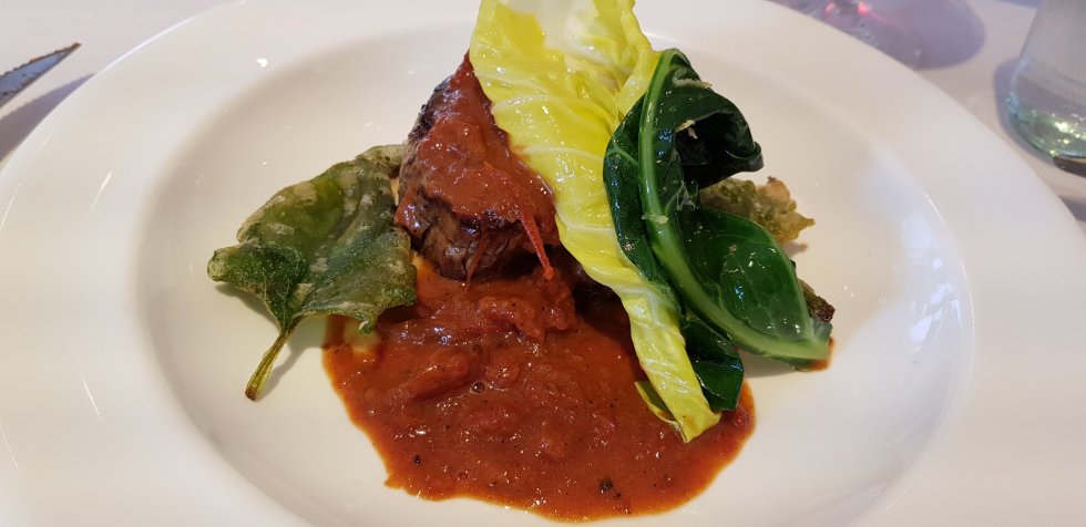 an eye fillet with spring greens and rich tomato concasse to follow, cheeses acompanied by honeycomb, fresh peas, wine jellies and other delights to finish.
